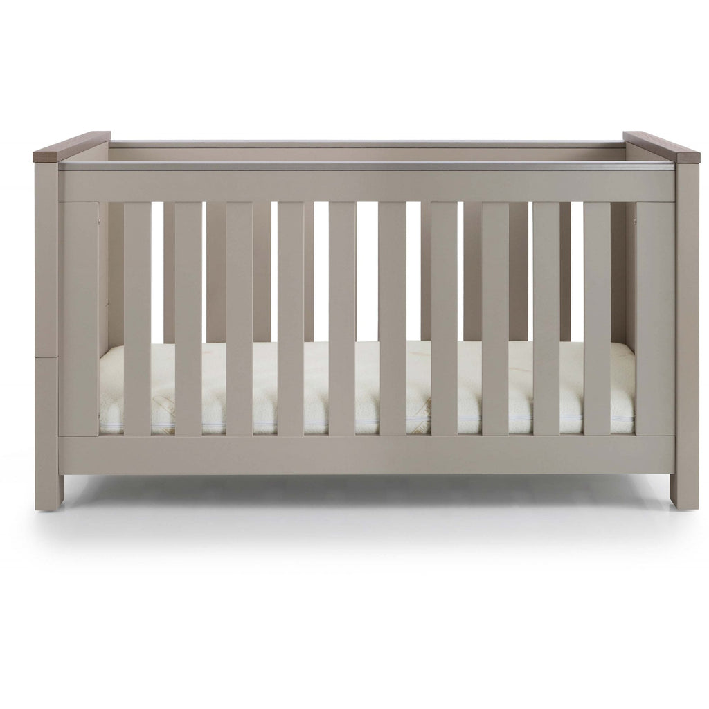 Babystyle Bordeaux Cotbed is a modern looking piece of furniture with clean lines and oatmeal colouring. The cotbed sides have teething rails and the base has three height positions to adapt to your child as they grow and becomes more mobile. The Bordeaux also converts into a junior bed when your child gets too old to sleep in the cotbed.