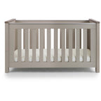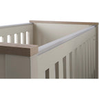 The Bordeaux Oatmeal cot bed offers a 3-position base, teething rail and effortlessly adapts from a cosy newborn crib to a stylish toddler bed, ensuring longevity beyond the early years.