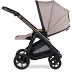 Ultra compact chassis with only 52cms wide. With four wheel suspension and wheels with ball bearings the pram can be manoeuvred with just one hand. The wheels are designed for an agile rise, they facilitate the action of going down and up stairs and absorb bumps, unevenness and irregularities on the surfaces. Easy to open and fold with seat unit attached either way. 7.5kg with basket.
