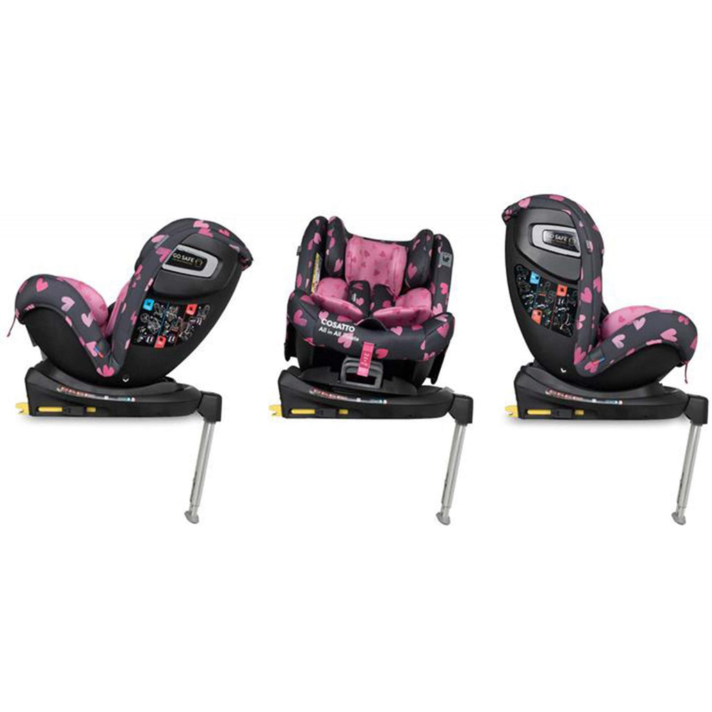 The Cosatto All In All 360 Rotate Isofix Car Seat is suitable from birth right through to 36kg (approximately 12 years old). With extended rear-facing, the All In All Rotate offers safer travel for longer. Rear-facing has been proven to be a much safer way for your child to travel and can be used right up to 18kg (around 4 years old).
