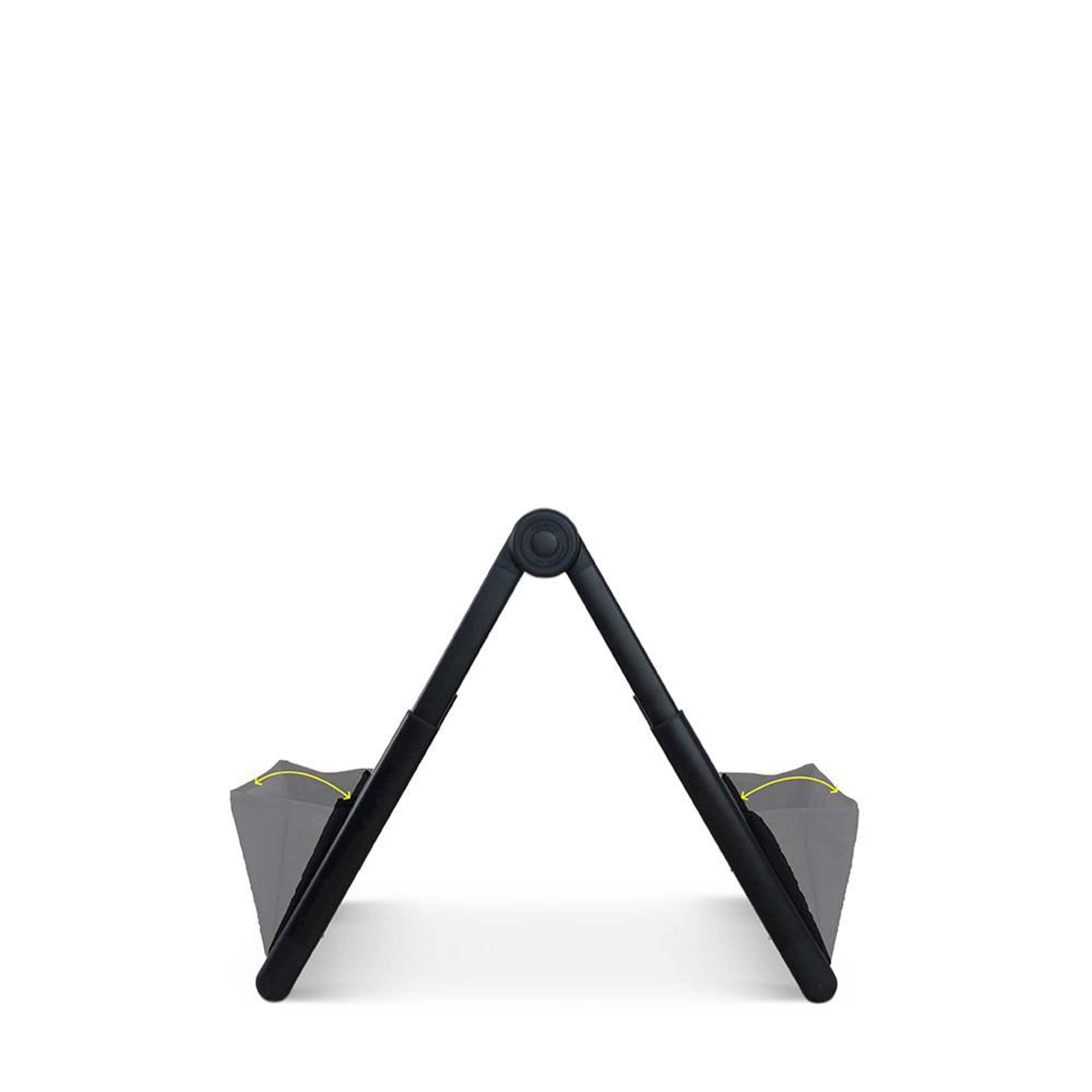 • Easy-fold lightweight aluminium chassis with handy stay-closed feature to keep it folded in transit or storage, free-standing with seat unit attached