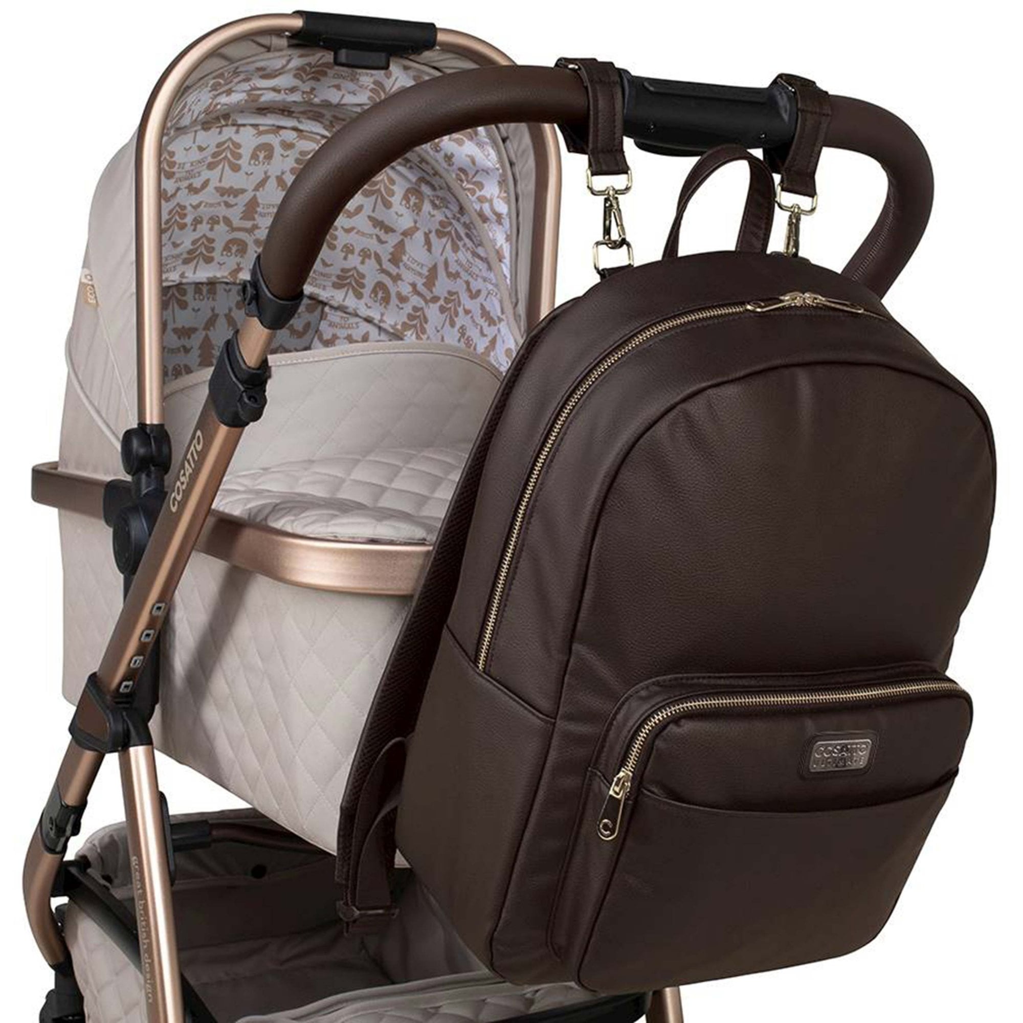 The Cosatto Ultimate Changing Bag is a practical leatherette backpack with a wipe clean changing mat and a padded internal laptop pocket. It also comes with an insulated bottle holder so you can keep baby's bottle either warm or cool.