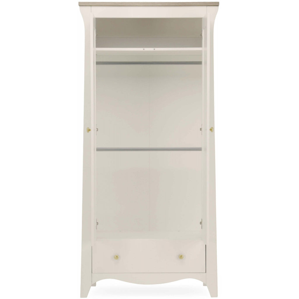 Give your nursery a stylish start with the Clara 3 Piece Nursery Set in Cashmere & Ash. A lovely 2 door double wardrobe with two removable hanging rails which let you convert it into a full size wardrobe at a later stage, convenient storage shelf and deep practical drawers for lots more storage.