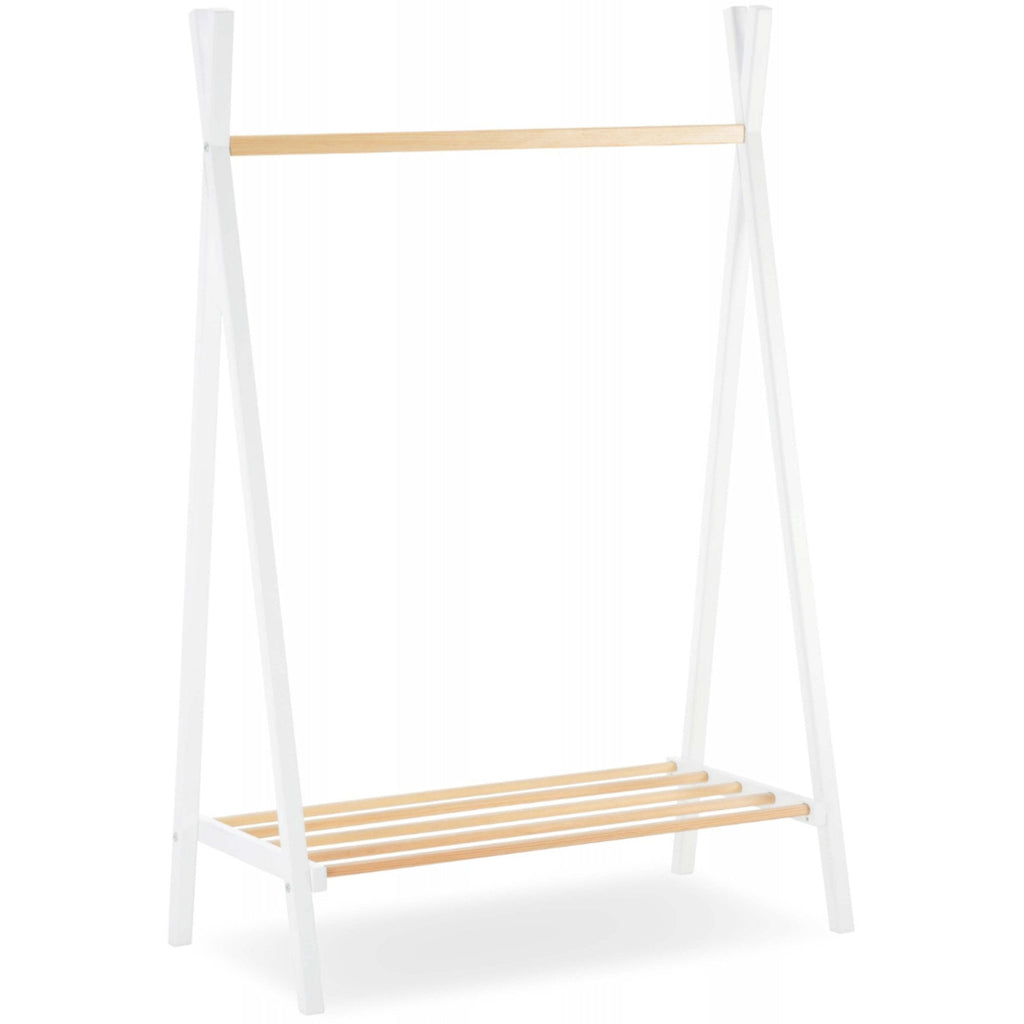 Lastly, we have an open clothes rail with single hanging rail and bottom shelf for storing other items that don't hang. Again, in white and natural colours, this sets open style will make any nursery feel light and airy.