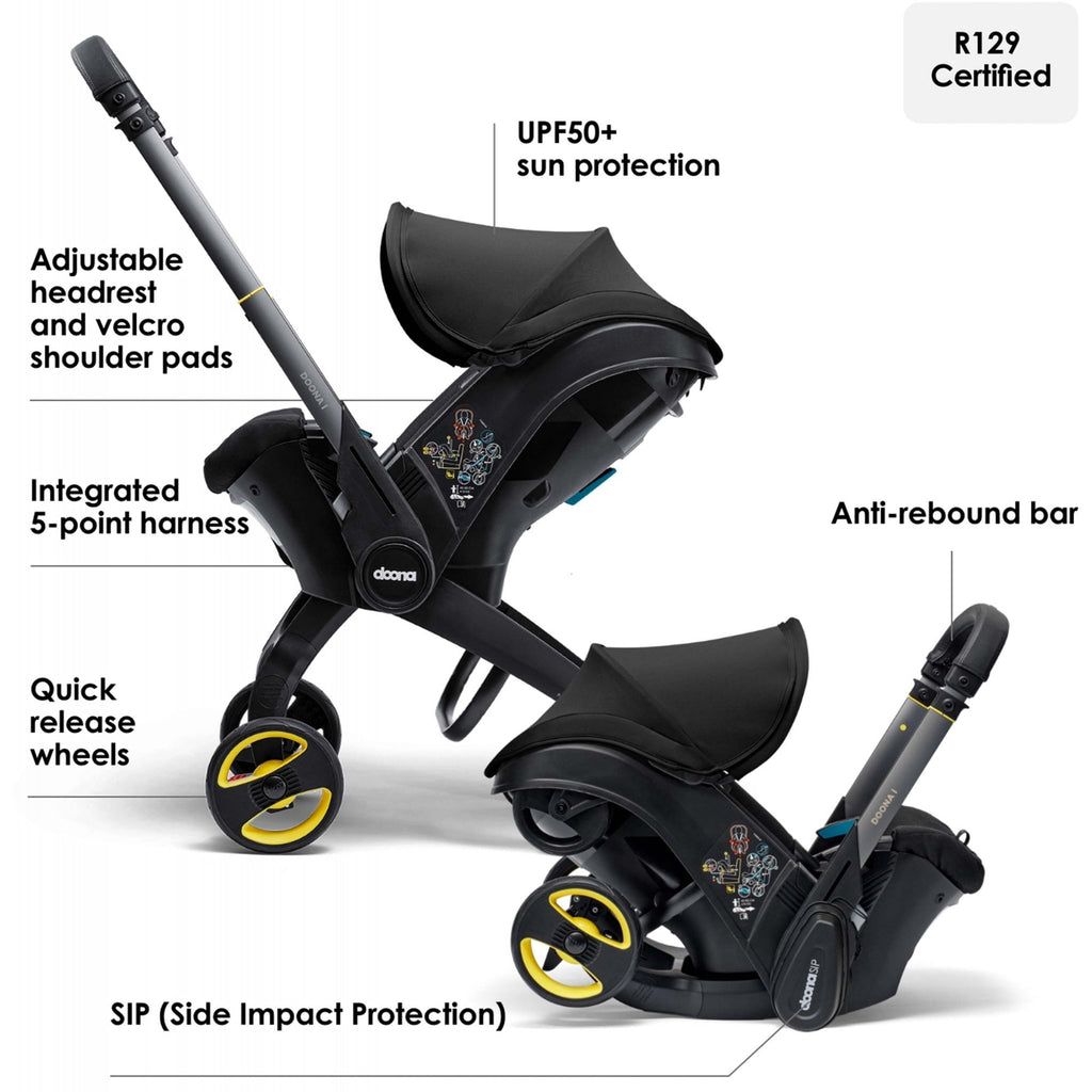 Doona i Car Seat & Stroller is a fully integrated travel system, allowing you to move from car seat to stroller in seconds. Doona i meets the strictest car seat and stroller safety standards and is R129 certified, (meets the European i-Size safety regulation).