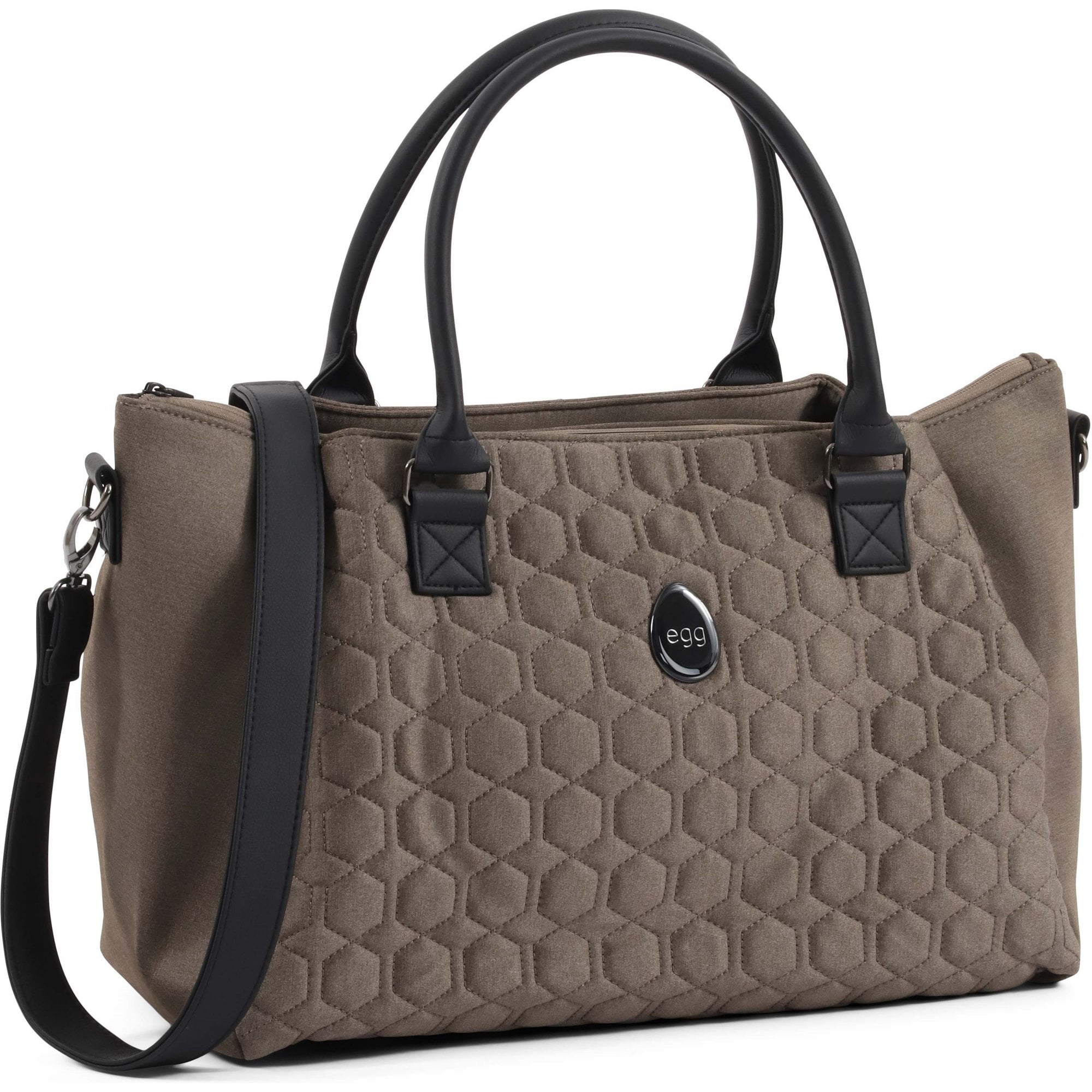 This versatile bag has a matching changing mat for baby's little emergencies and a detachable leatherette shoulder strap for help carrying when it's full of essentials. There are numerous pockets for storing items for yourself and baby and the bag is available in matching egg3® colourways.