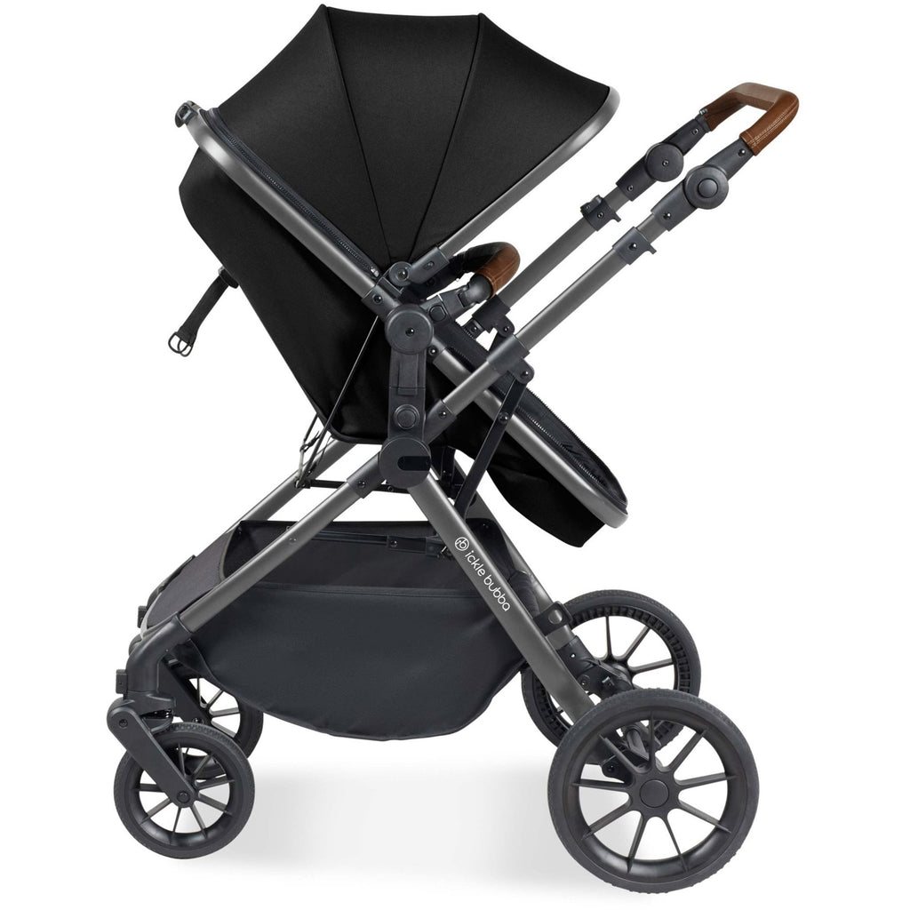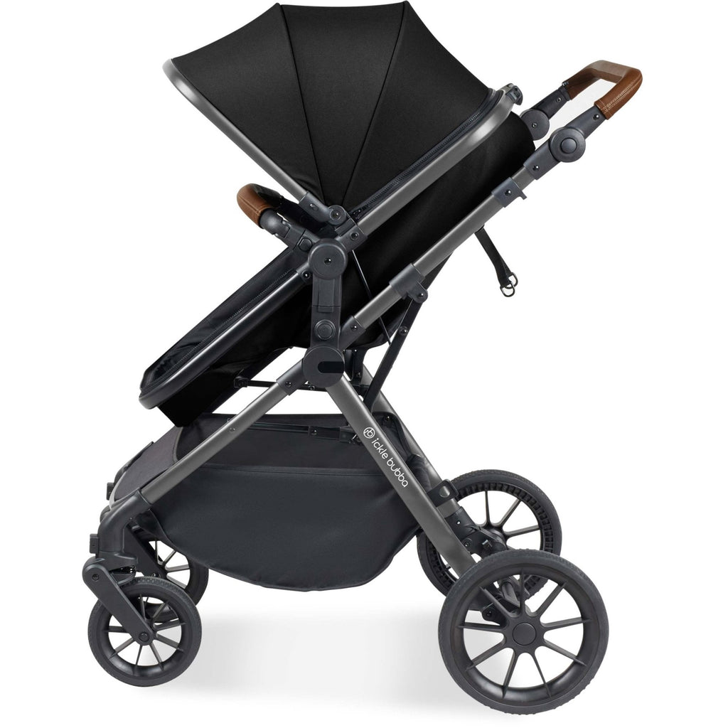 Ickle Bubba Cosmo 9 Piece Travel System with Nimbus i-Size Car Seat & Spin ISOFIX Base Black is an affordable solution for any parent. The stylish pushchair has flair, sophistication and luxury fabrics that place as little stress on your bank balance as possible. Baby can sleep comfortably in a fleece-lined footmuff while the apron with privacy panel protect from the weather and outside disturbances as they rest.