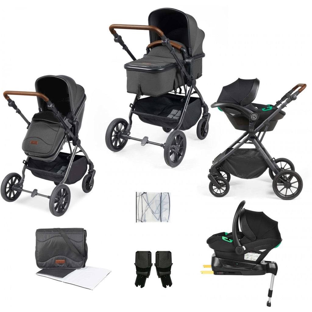 Ickle Bubba Cosmo 9 Piece Travel System+ Numbus Car Seat & ISOFIX Base Graphite Grey