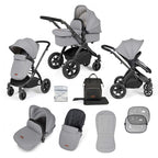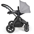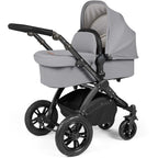 Ickle Bubba Stomp Luxe 9 Piece Pram Pearl Grey is a little slice of luxury with all-terrain capability. Large puncture-proof rear wheels with thick tread and front locking swivel wheels give you control to suit the type ground you're travelling on. The rear wheels can be removed using the quick-release for easy cleaning and storing.