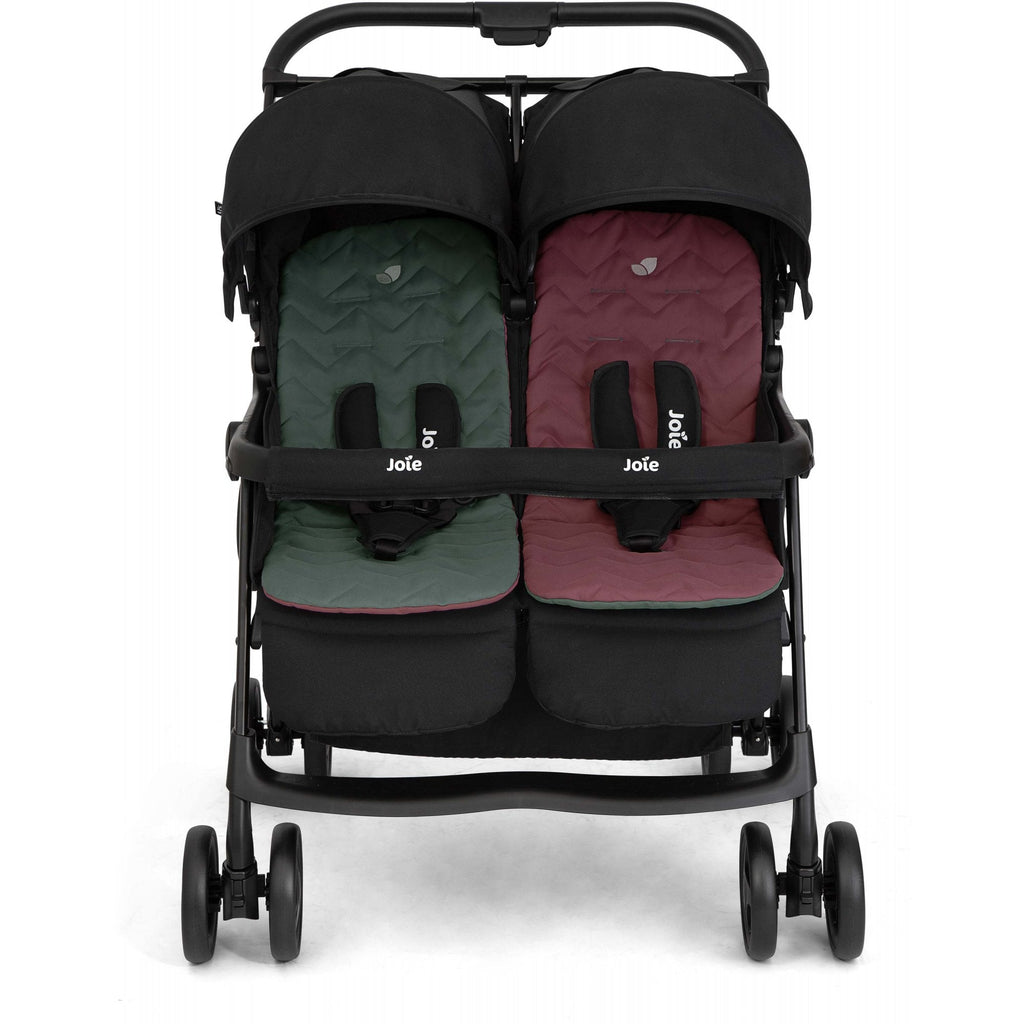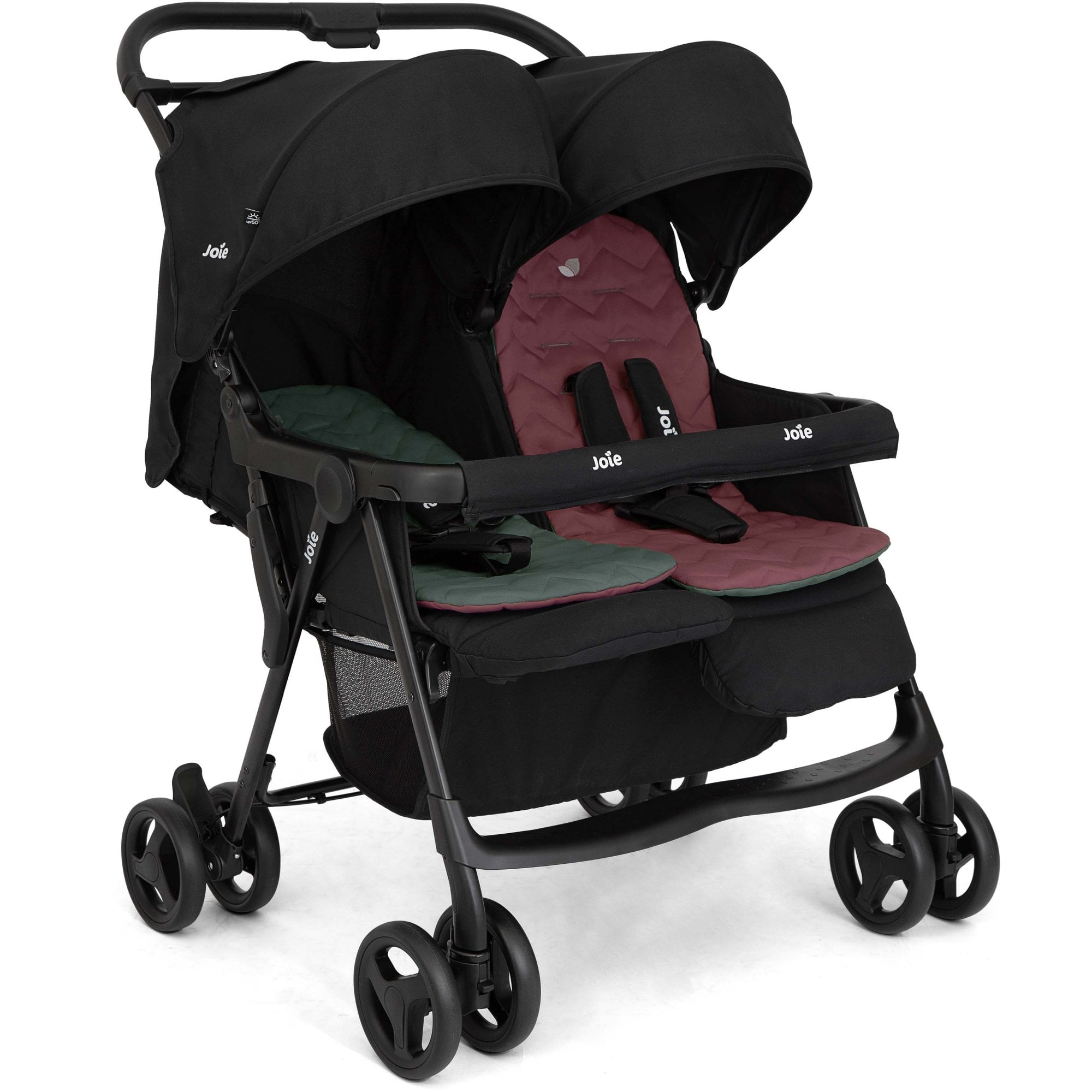 - Multi-position, flat reclining seat provides backrest recline options for either child