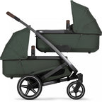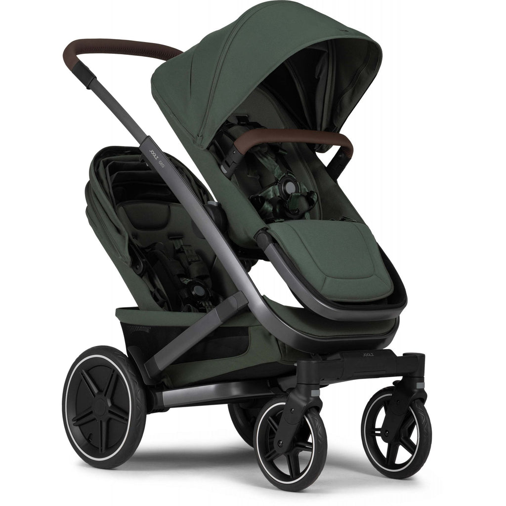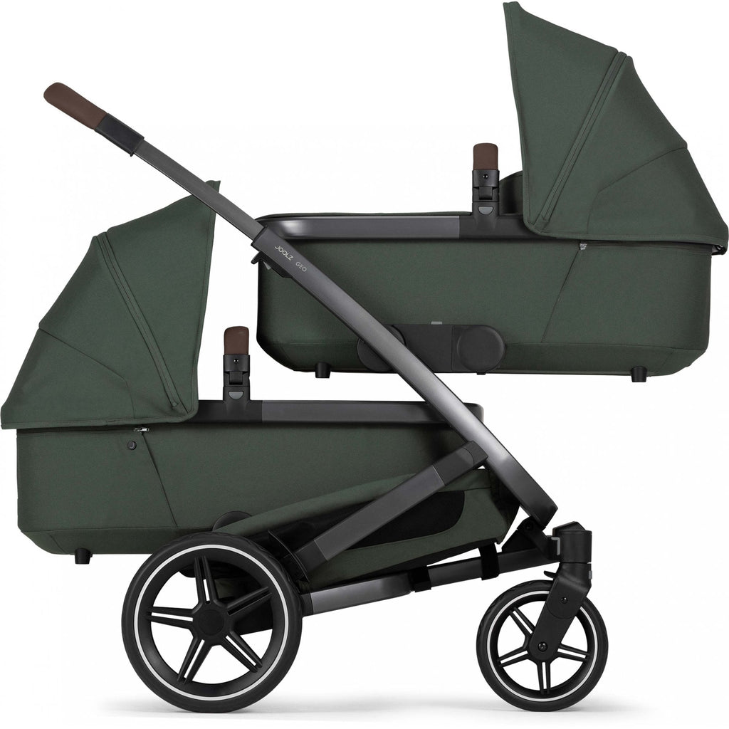Wow ... twins! Now you can have twice the fun. The Joolz Geo3 Twin Pram paves the way for the new arrivals. It’s as easy as attaching upper or lower adapters, clicking on an extra bumper bar and sun hood, and hey presto, life’s still manageable! Neither you nor your kids need compromise because you shouldn’t settle for less. Instead, the whole gang is ready for adventures, wherever in the world you are.