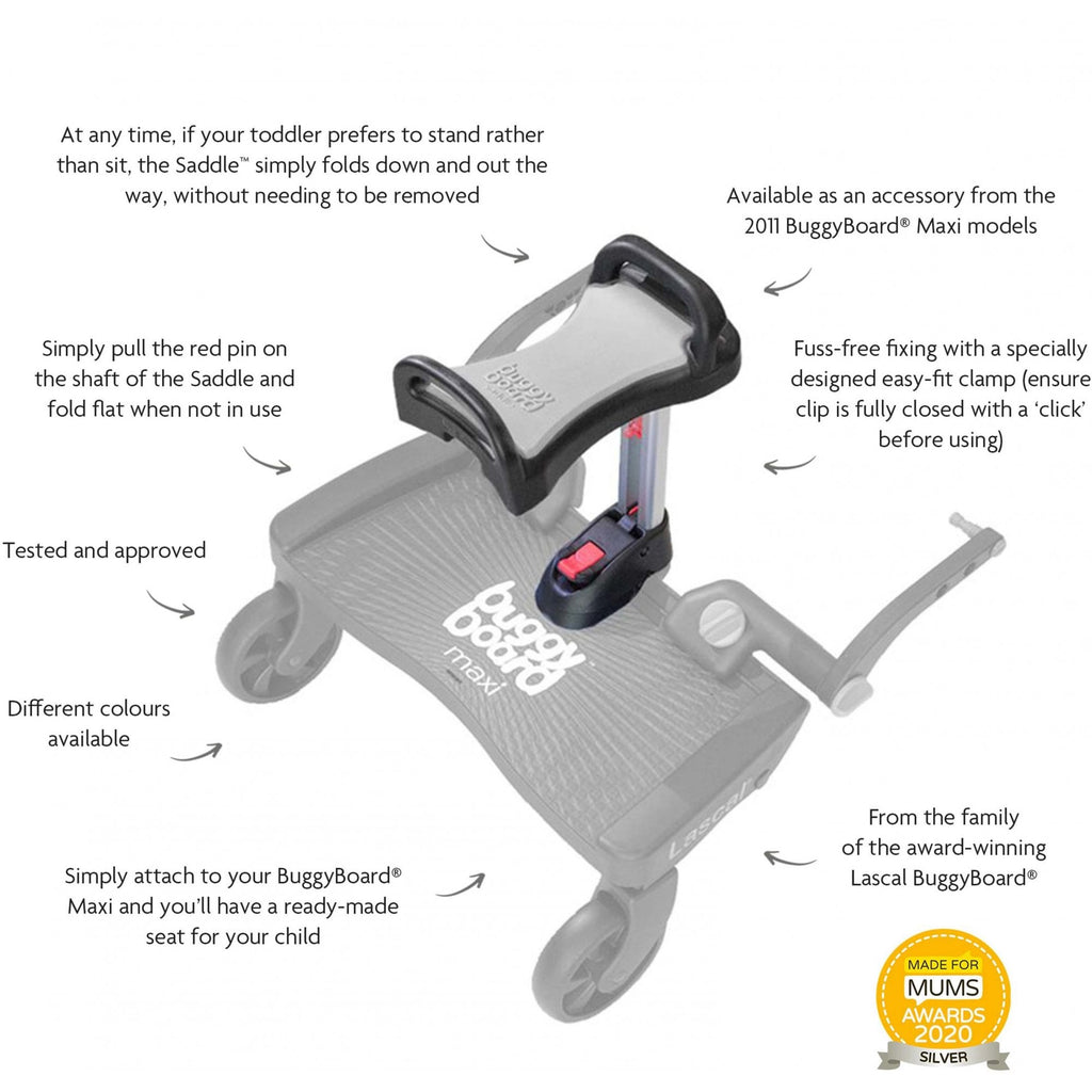 Available as an accessory for the BuggyBoard® Maxi models (2011 onwards), the Saddle™ can be fixed fuss-free with a specially designed easy-fit clamp. Simply attach to your BuggyBoard® Maxi to your pushchair and you’ll have a ready-made seat for your child.