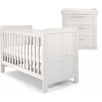 Atlas 2 Piece Nursery Set from Mamas & Papas has a classic look with a traditional woodgrain finish. Consisting a dresser changer with three large drawers and a removable changer top and a cot bed with three height position base that will also convert to a toddler bed. A separate mattress of size 140 x 70 x 10 cm will be required for the cot bed.
