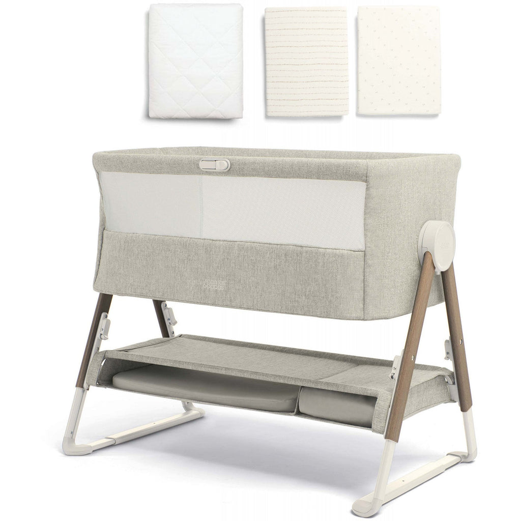 The Mamas & Papas Lua is a bedside crib that is suitable from birth to approximately 6 months. This practical and safe place for baby to bed down can be moved around the house during the day as a bassinet and set next to your bed on a night as a bedside crib. An adjustable side on the crib has an auto-return option and provides very easy to access your baby when they need attention and cuddles.