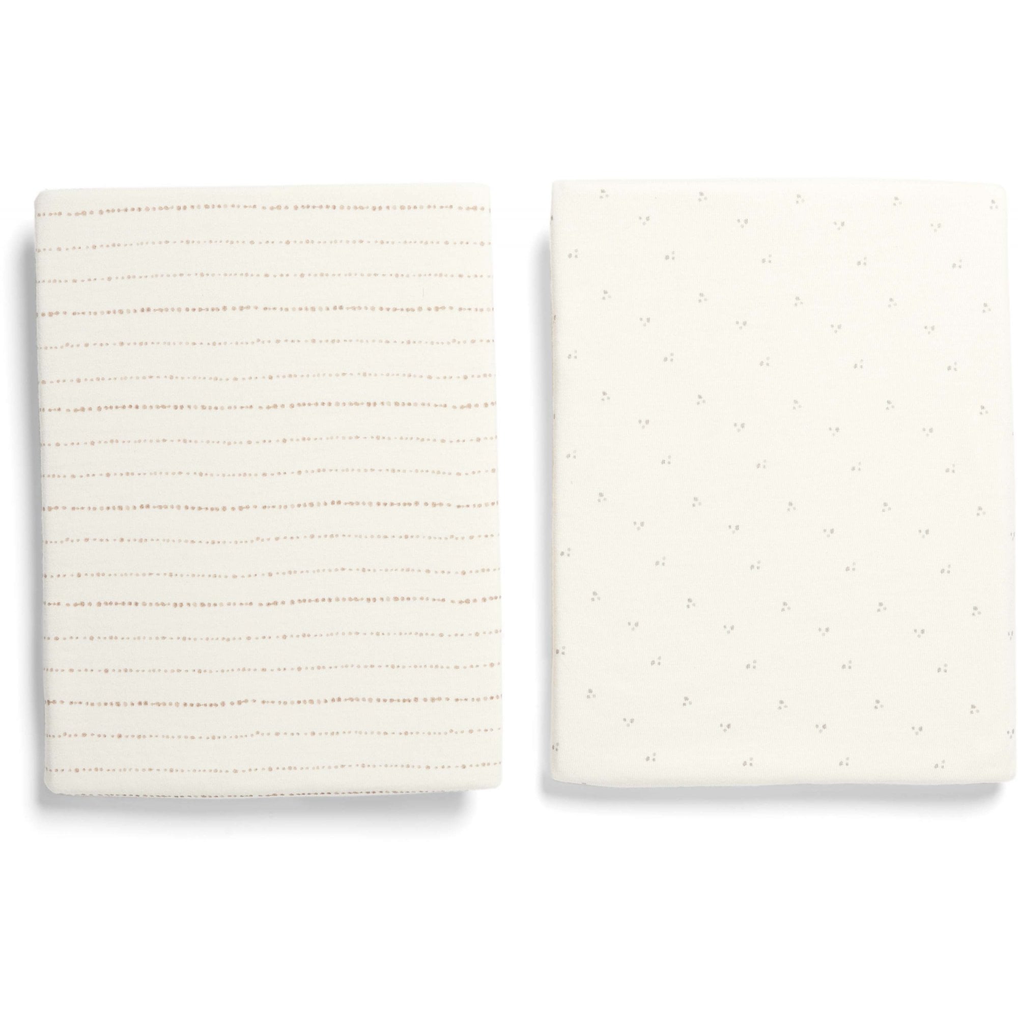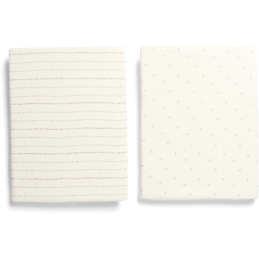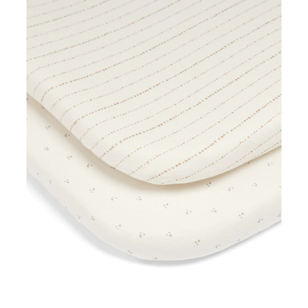 This 2 pack of fitted sheets are the perfect finishing touches for your little one's bed. Designed to fit onto our Lua bedside crib, they're crafted from soft 100% cotton and finished with a lovely oatmeal stripe and a dot print. They're machine washable and will happily go into your tumble dryer, too, so those little night-time accidents are easily cleaned up.