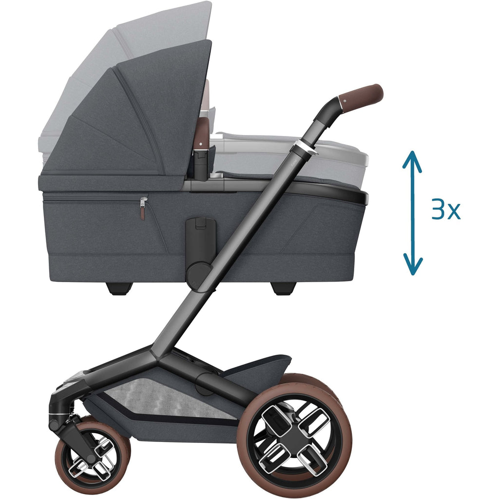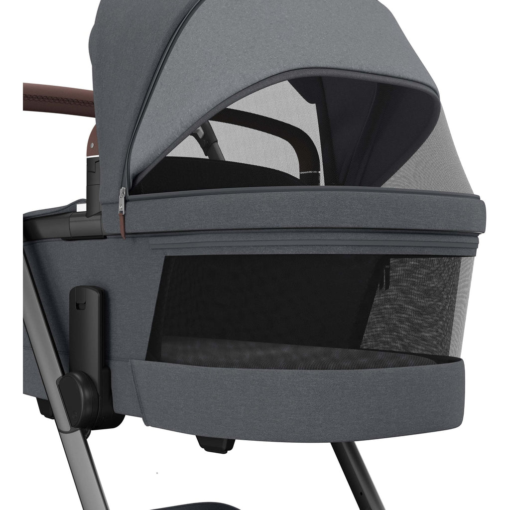 Maxi-Cosi’s Fame carrycot offers luxurious comfort for both baby and parent. A wide, spacious carrycot with a reversible, breathable memory foam mattress and ventilation window, will ensure your newborn is always at a comfortable temperature and experiencing the very best sleep comfort. Designed with an integrated SoothingSlope, you simply pull a strap to gently raise your baby into an inclined sleeping position to minimise any reflux. For taller (or smaller) Mums and Dads, the Close2Me adjustable carrycot moves up or down, to ensure you never have backache while placing your baby in and out.