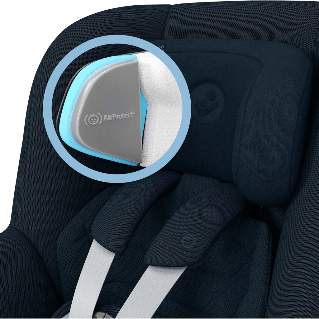With 5 recline positions the Mica 360 can be adjusted for comfort for baby to sleep or travel during the journey. The headrest has AirProtect® Safety cushions and the seat has built in back ventilation to keep baby cool and comfortable. No need to worry about any little baby accidents as the car seat cover is removable and machine washable too.