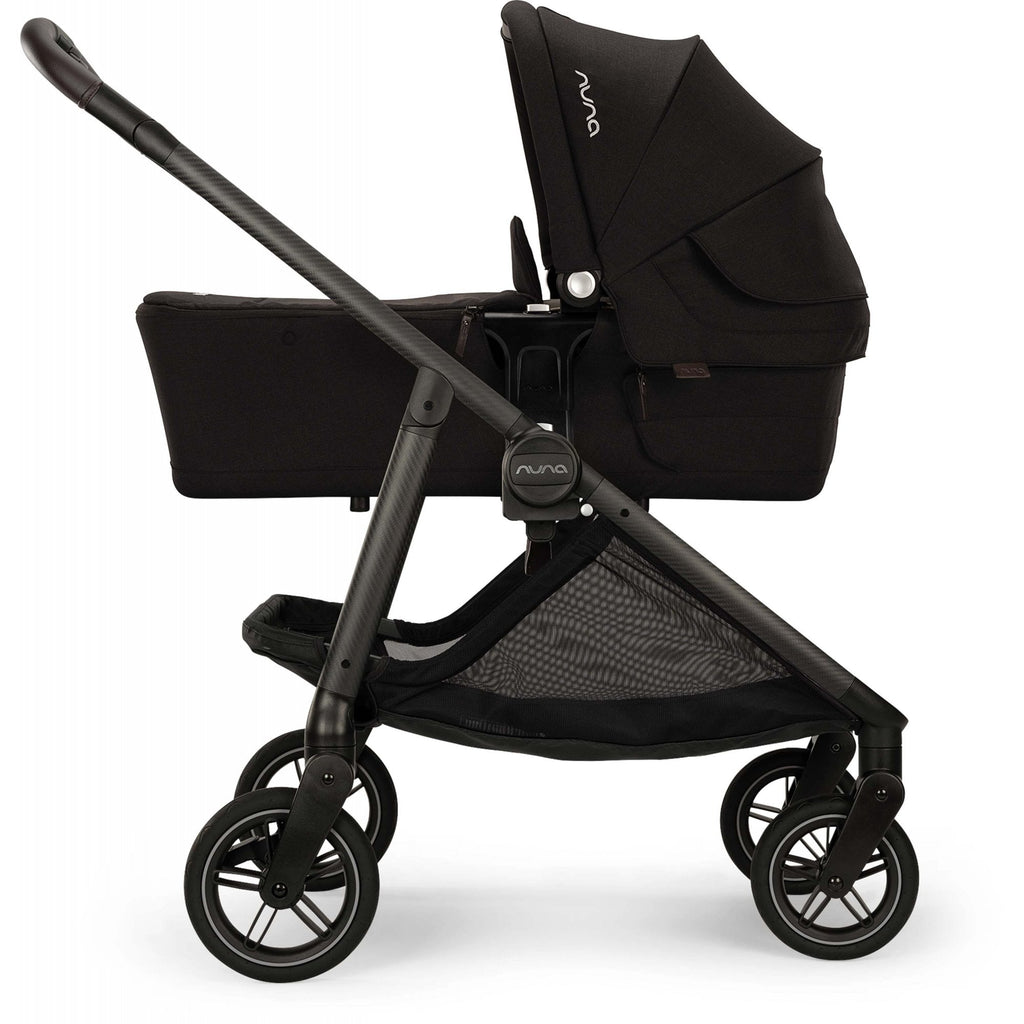 The UPF 50+ canopy, Nuna's iconic Dream drape™, and the included rain cover provide added protection from the elements and lovely, uninterrupted naps. Integrated memory release buttons and a hand-sewn leatherette carry handle make for a simple detach from the pushchair frame–because new parents deserve snuggles not struggles.