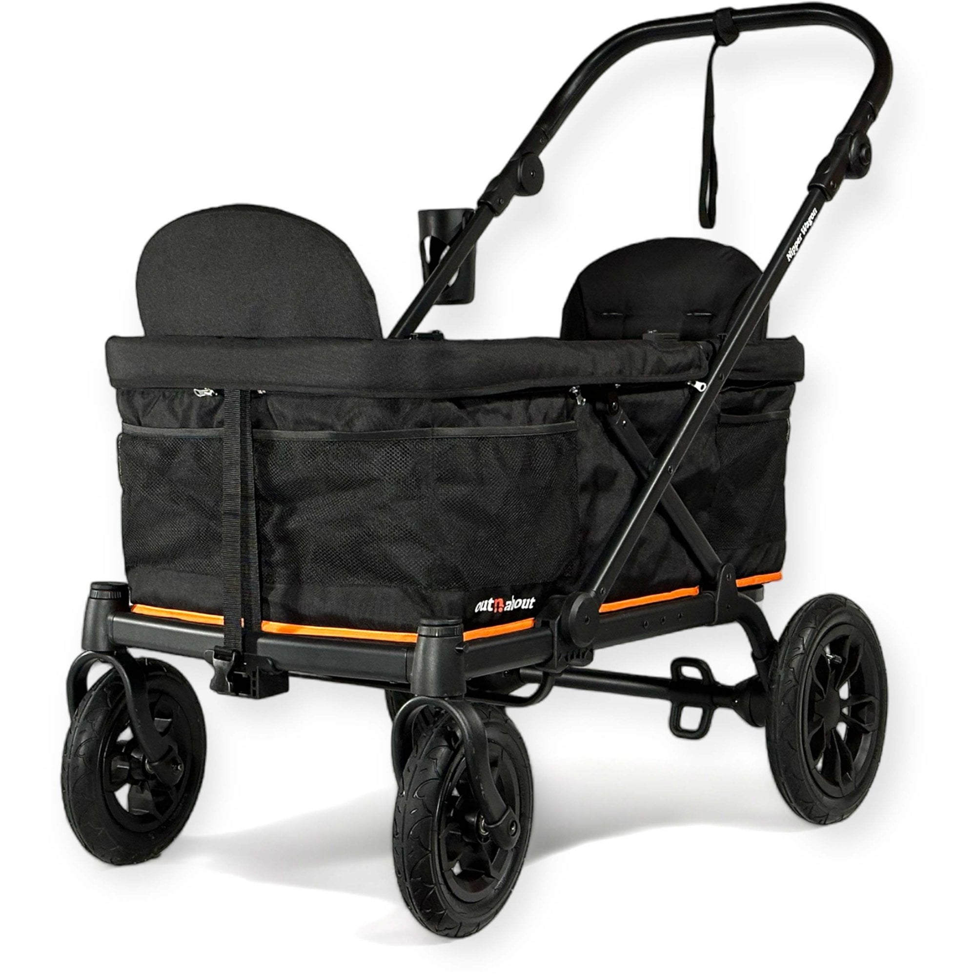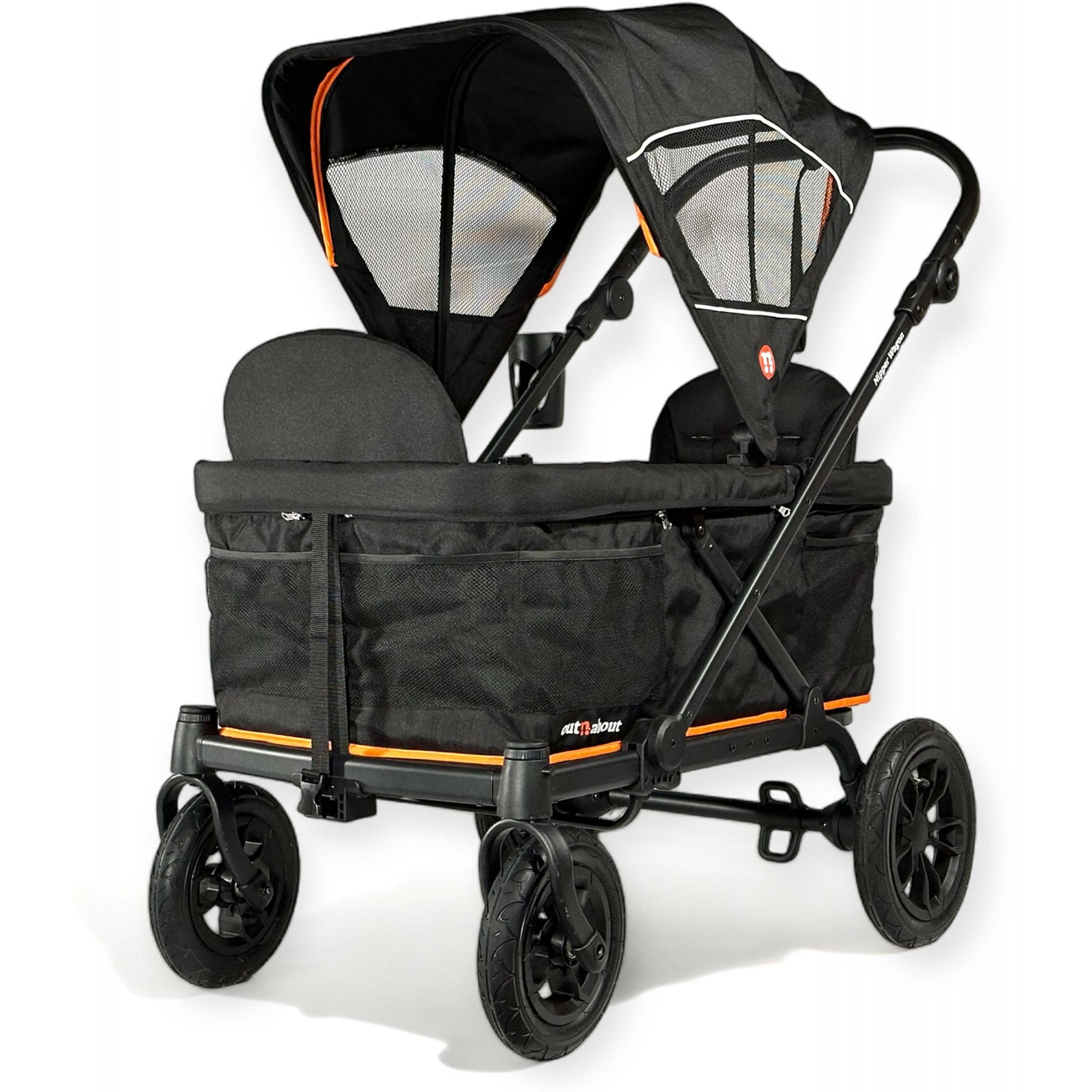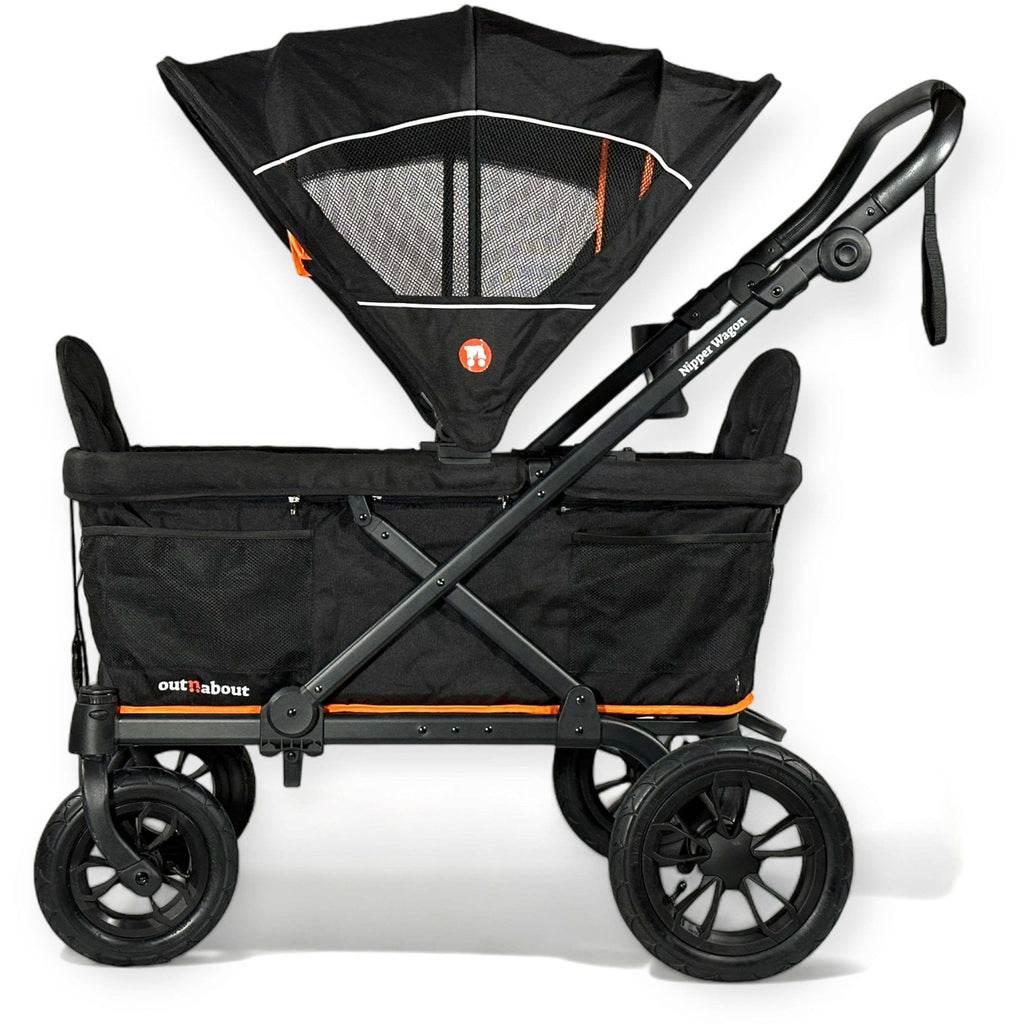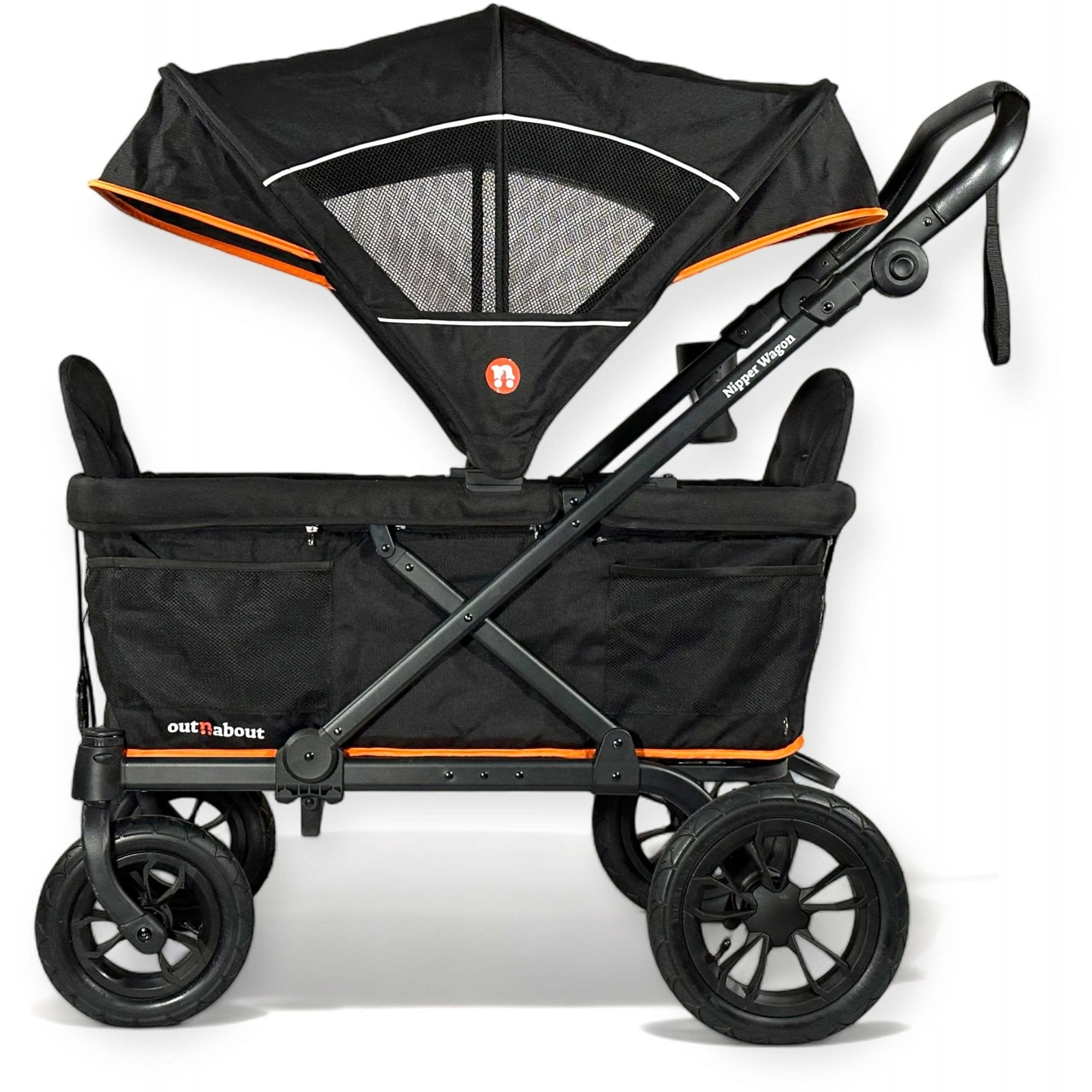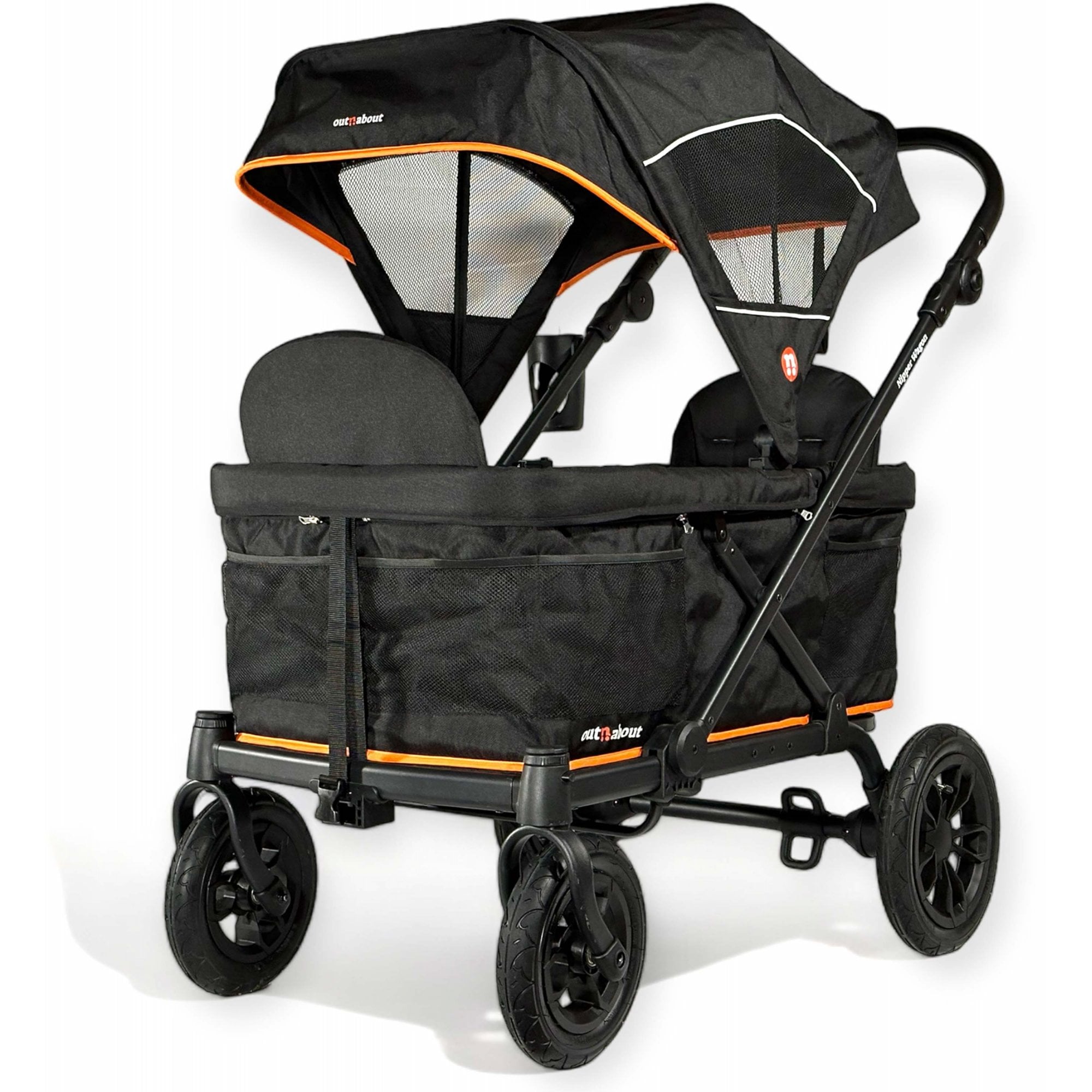 The Out'n'About Nipper Wagon has a range of features such as the technical water-resistant fabrics, extendable sun and UV visors, two removal seats with 5-point safety harnesses, lay flat interior or lowered floor for comfortable sitting. The Wagon also has plenty of netting storage inside and outside and comes with a rain cover and cupholder included.