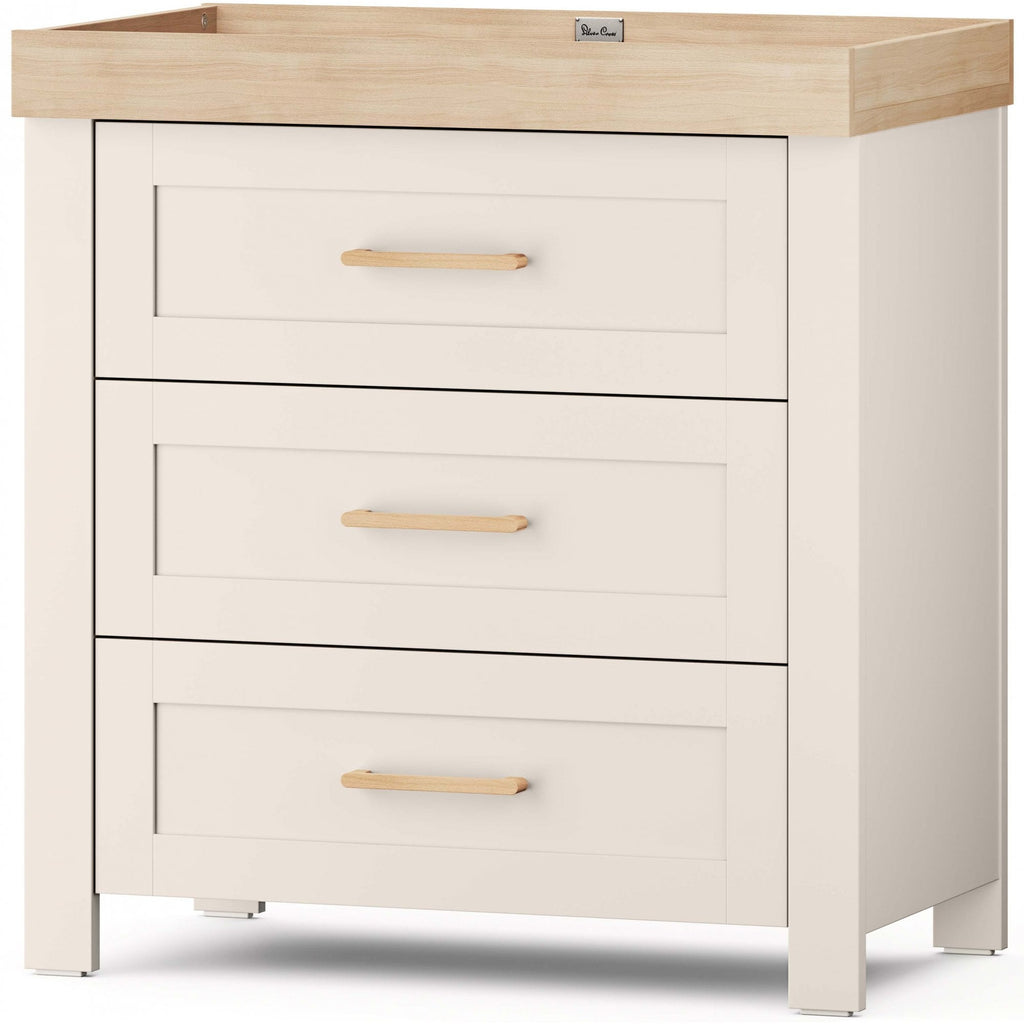 The Silver Cross Seville 2 piece nursery furniture set creates a bedroom environment for baby. It comes complete with a cot bed that converts to a toddler bed as they grow and a dresser with a removable changer top and three spacious, deep drawers.